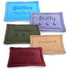 With the Custom Catch personalized cat bed, your cat’s name will be permanently imprinted on their favorite soft, cozy place of rest and relaxation. Pick from multiple color pad options (Purple, Maroon, Blue, Beige, or Gray-Green), then add the text you want! A super cute way to keep your pet happy. Select a font that shows everyone your kitty's personality. This personalized cat bed is an ideal cushion to fit carriers, window sills and other nap spots. This pet bed mat features a rectangular shape and fits most small carriers. This reversible bed is made from high quality fleece and has plenty of fill to provide a comfy sleeping spot for your favorite furry friend. Beautifully personalized cat beds are always clearance priced. Machine Washable – this cat bed can be machine washed. Dimensions – small size measures 15 x 23 inches. Perfect for carrier or as a standalone bed mat. Keep your cat cool in the Summer, warm in the Winter. Uses - window perch, topper for a tower, in a carrier, vehicle, cat house or simply on the floor or furniture. Beautifully imprinted – pet’s name in your choice of fun and original fonts. Thick hand customized cushion. A lightweight travel mat that can be rolled up and taken with you on every trip. Personalized showpiece has a softness that pets gravitate to. Colors help hide cat hair, while giving you the options to match your home décor. A 100% polyester fill cushion offers superb support underneath your pet's body. The Custom Catch personalized cat mat creates a welcoming spot for your pet whether at home or spending a weekend away. Keep your pet feeling comfortable and relaxed wherever you go with the Custom Catch bed mat -- because your little friend deserves nothing less than the best.
