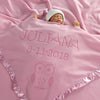 You can order the blanket in either pink or blue, and it’s made out of a beautiful fleece material. The edges are lined with a satin trim leaving the blanket completely soft to the touch. The baby’s sensitive skin will love the texture.