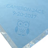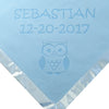 This design includes two lines of custom text to be placed above the owl’s head. The custom text allows you to include the baby’s name or initials in the design. You can also add their date of birth, middle name, or the city where they were born. The font is fun and kid-friendly, so they will still love this blanket when they grow up and become toddlers.
