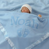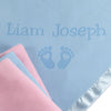 Personalized Newborn Blanket with Hearts and Feet, One Line (Pink and Blue)