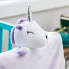 Every little girl dreams of having a unicorn, so let us help you make her dreams come true with their own fluffy unicorn blankets! Designed with love and magic, the Custom Catch unicorn blankets feature a snow white unicorn head with a fuzzy purple blanket body. The unicorn has a purple mane that matches the attached purple blanket, and your little girl will be completely enchanted by the unicorn’s mystical silver horn and cute heart nose!