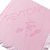 The airplane design is more casual, and it’s also very cute! It’s a great design that any baby would grow to love as they become a toddler. You can get the blanket in either blue or pink. Of course, you also need to customize it!